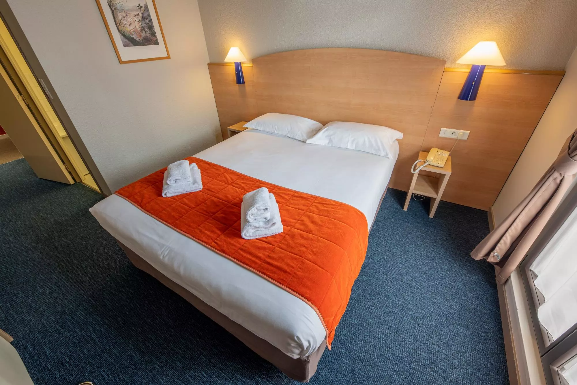 All our rooms are equipped with a separate toilet and shower room, except for PMR rooms.